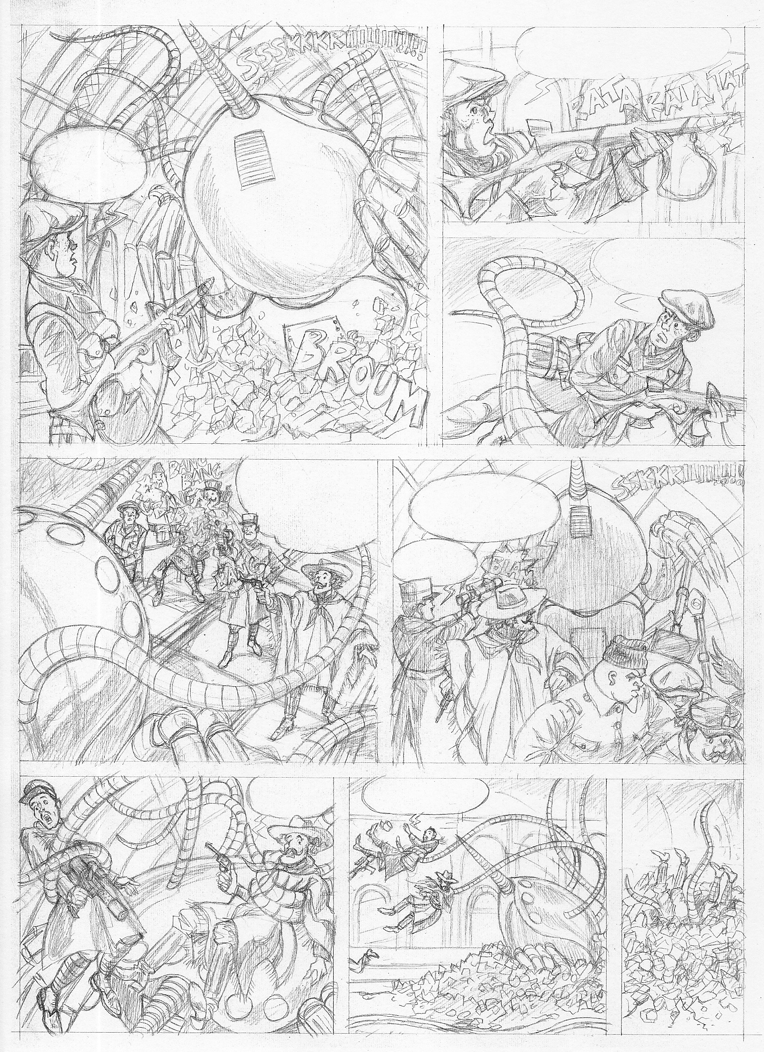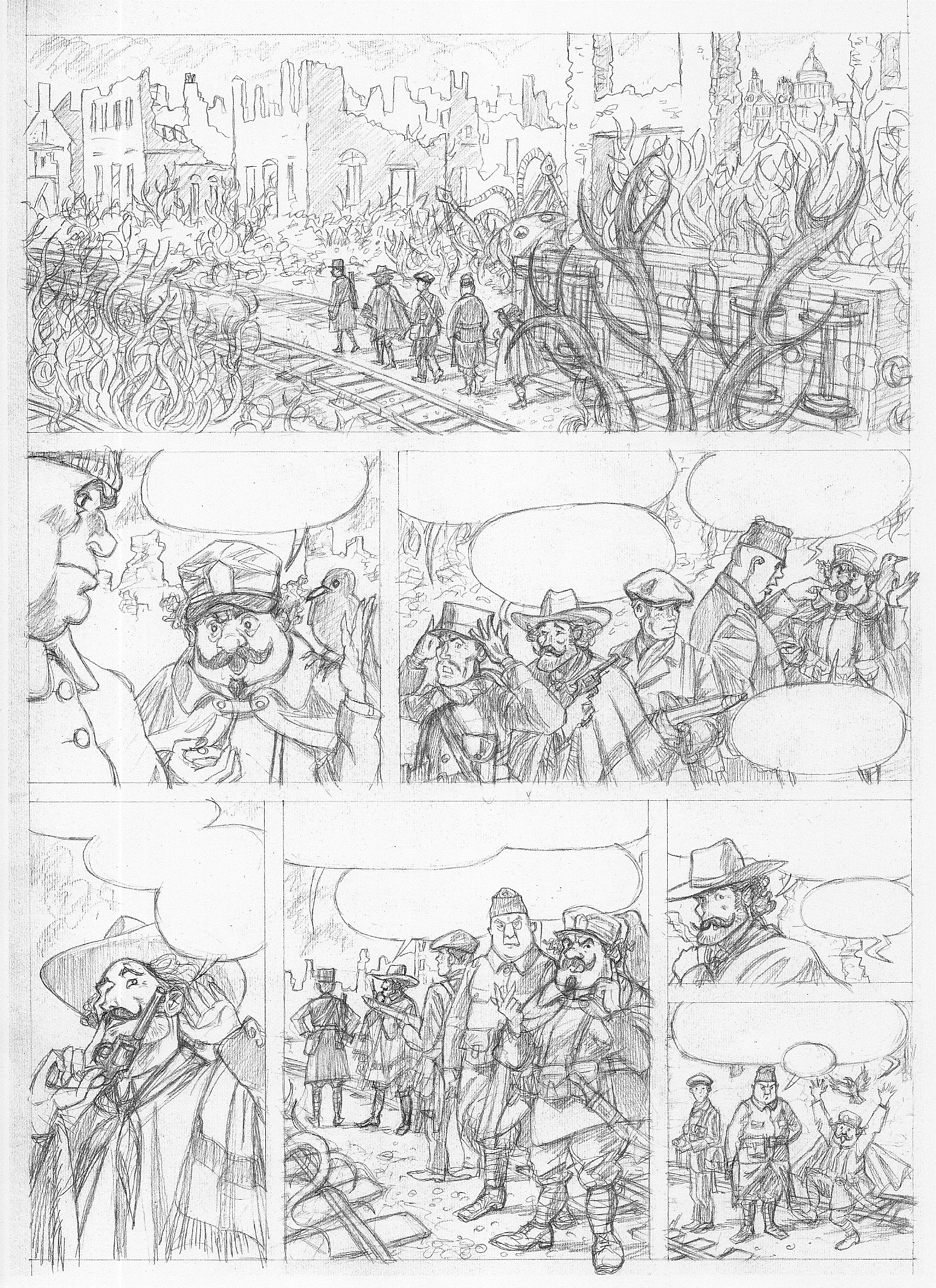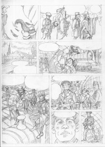 My pencil drawings for a proposed science-fiction comic for a French publisher. Unfortunately these drawings did not match the scriptwriter’s vision, but there is a possibility that further projects may come out of it. Here’s hopin’.
