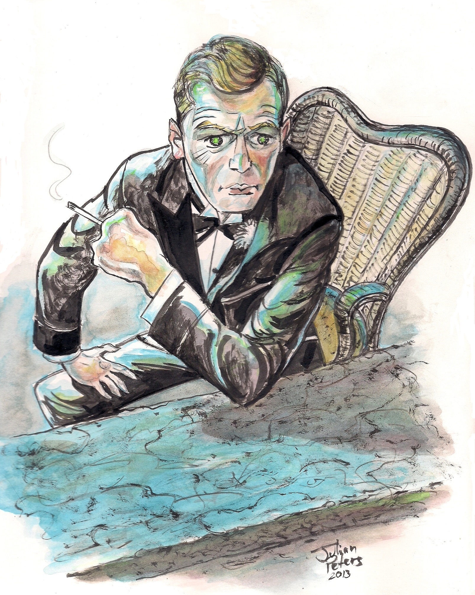 Prompted by the release of its umpteenth cinematic adaptation, I have just reread The Great Gatsby for the umpteenth time. I was particularly struck this time around by the degree to which the novel’s ultimate emotional payoff seems so much greater than what would appear to be warranted by the emotional entanglements of its caricaturish, at times almost cartoonish characters (Gatsby himself occasionally comes off a little like an older, hopeless-romantic version of Richie Rich). That Fitzgerald achieves this feat is due in large part to the novel’s magisterial, sweepingly poetic and universal last page. It is the closing lines of this last page to end all last pages that this drawing seeks in part to illustrate [spoiler alert!]: