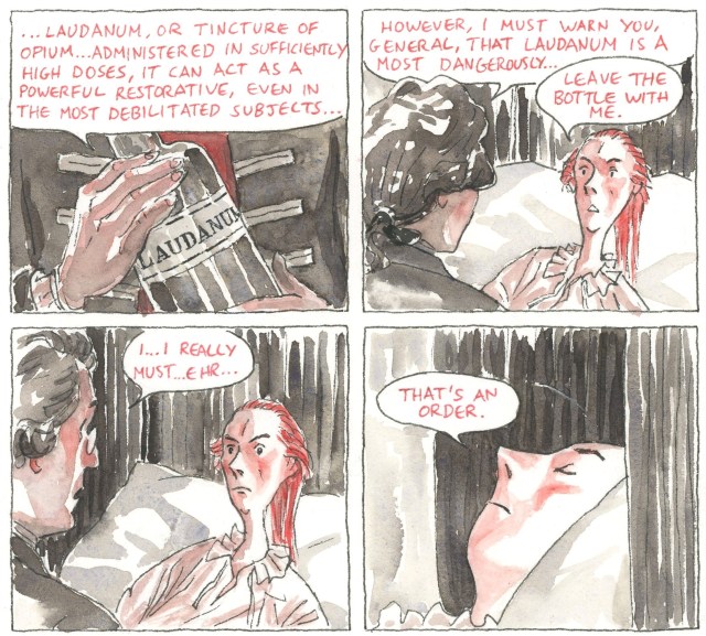 This entry was posted in Battle of the Plains of Abraham, comics, new france, watercolour and tagged Battle of the Plains of Abraham, James Wolfe, laudanum, opium, quebec. Bookmark the permalink.