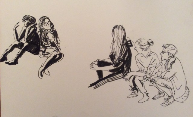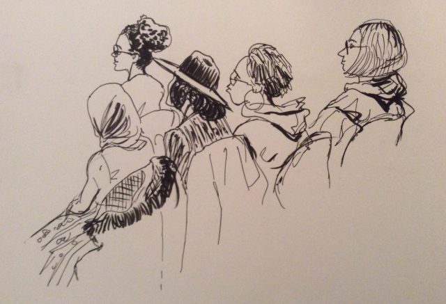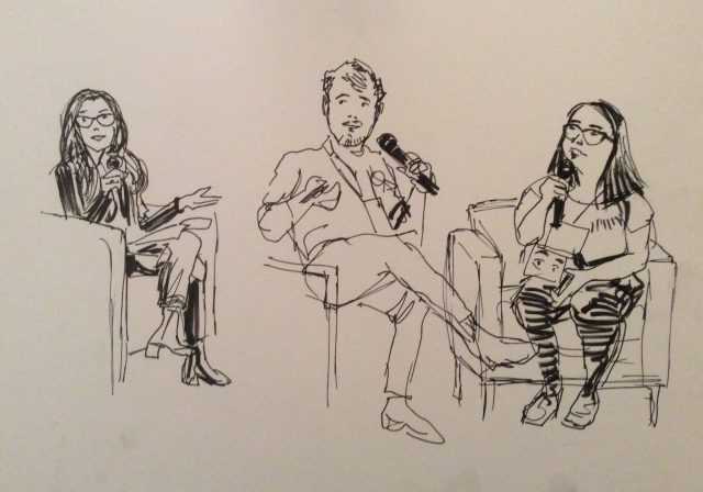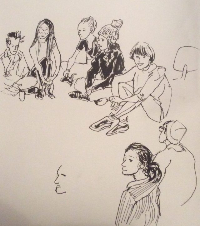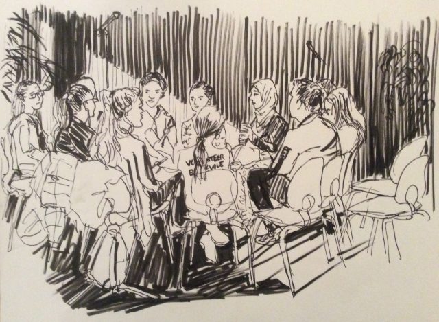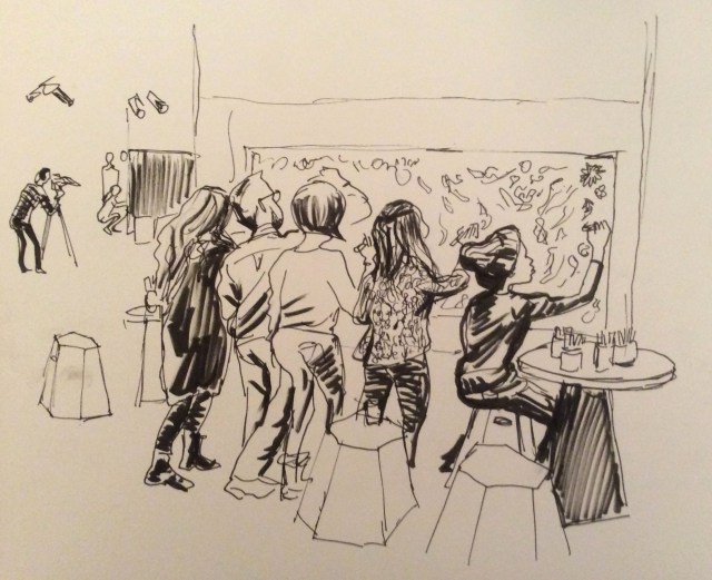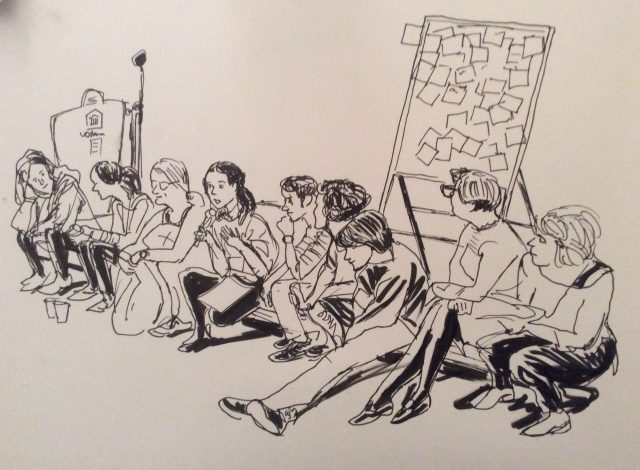 This past weekend I participated in YAS! (SYMPO! in French), the Youth Art Symposium organized by the Ottawa Art Gallery. Spearheaded by the brilliant and indefatigable OAG Youth and Educational Programs Coordinator Alexis Boyle, YAS! 2017 was aimed at bringing together select young people aged 15-25 who are currently involved with cultural institutions across the province of Ontario in order to join and lead the discussion on making art more accessible to youth. I was also invited to the event, not, alas, as a youth representative, but in order to act as a “graphic note taker,” tasked with providing visual documentation of the three-day event in the form of live, on-the-spot drawings. Here are the results. The reproductions aren’t great as they are taken with my phone camera; the originals stayed in Ottawa. All told, the event appeared to me to have been a smashing success, and went a long way toward restoring my faith in the future of humanity.