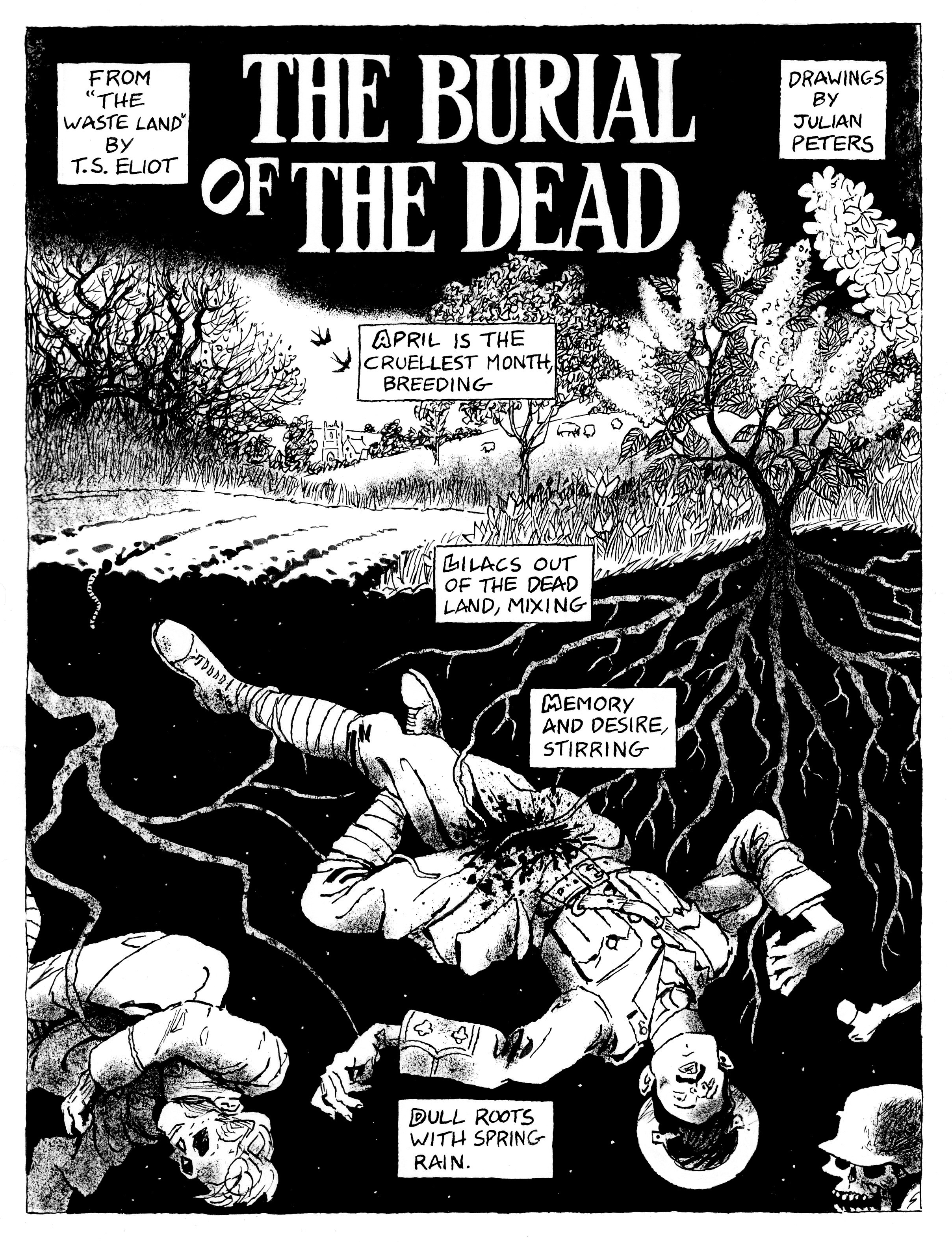 Ever since completing my comics adaptation of T. S. Eliot’s “The Love Song of J. Alfred Prufrock,” I have wanted to do something similar with Eliot’s most famous and celebrated poem, “The Waste Land.” But besides being extremely complex and often difficult to interpret,”The Waste Land” (First published 1922) is very long, and this always deterred me from getting started. But in recent times, with a historical situation that in many ways mirrors that in which Eliot was writing, with a society emerging from a vast global collective trauma–made up of innumerable individual personal traumas–and a disquieting future looming on the horizon, this latent desire pressingly reasserted itself.